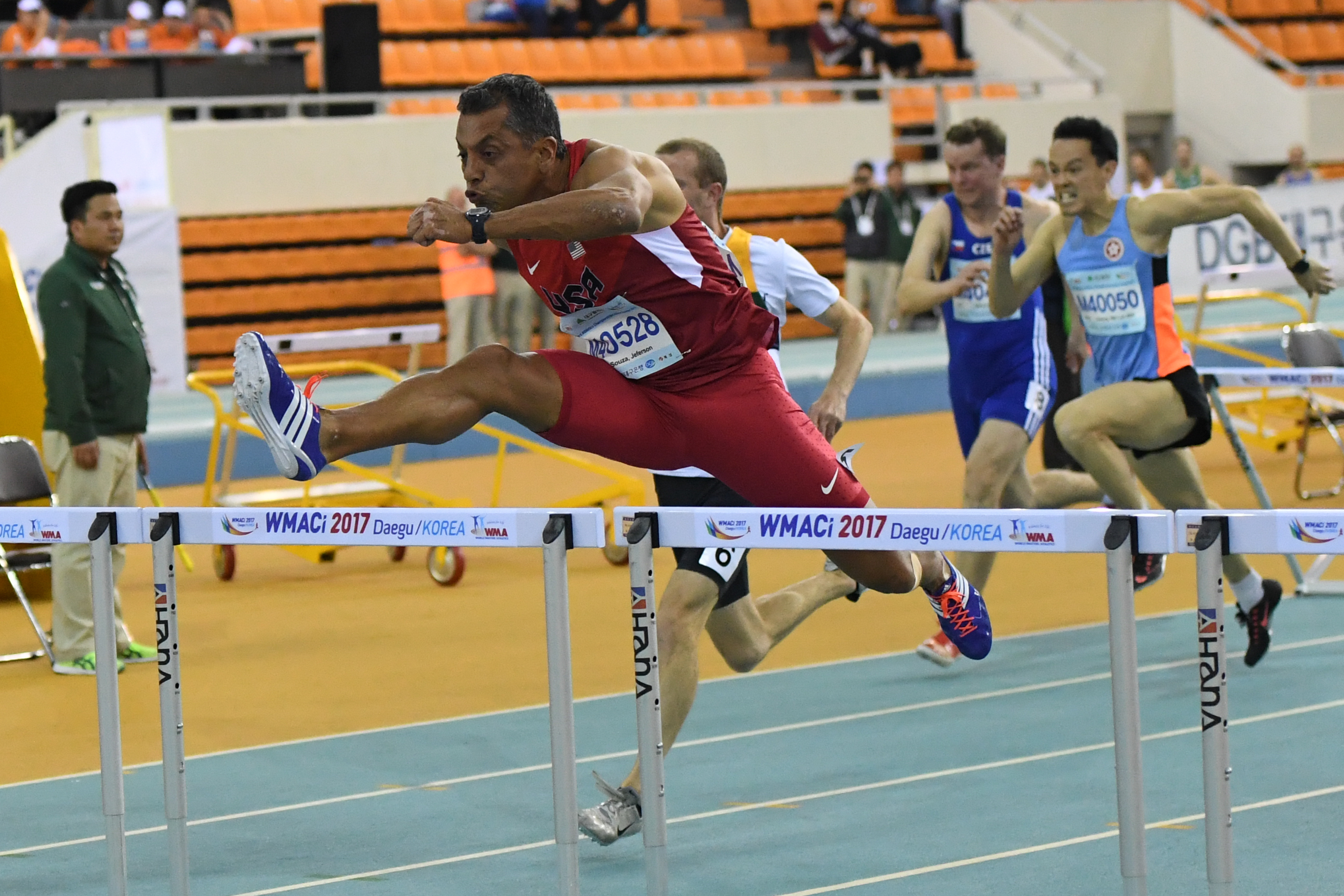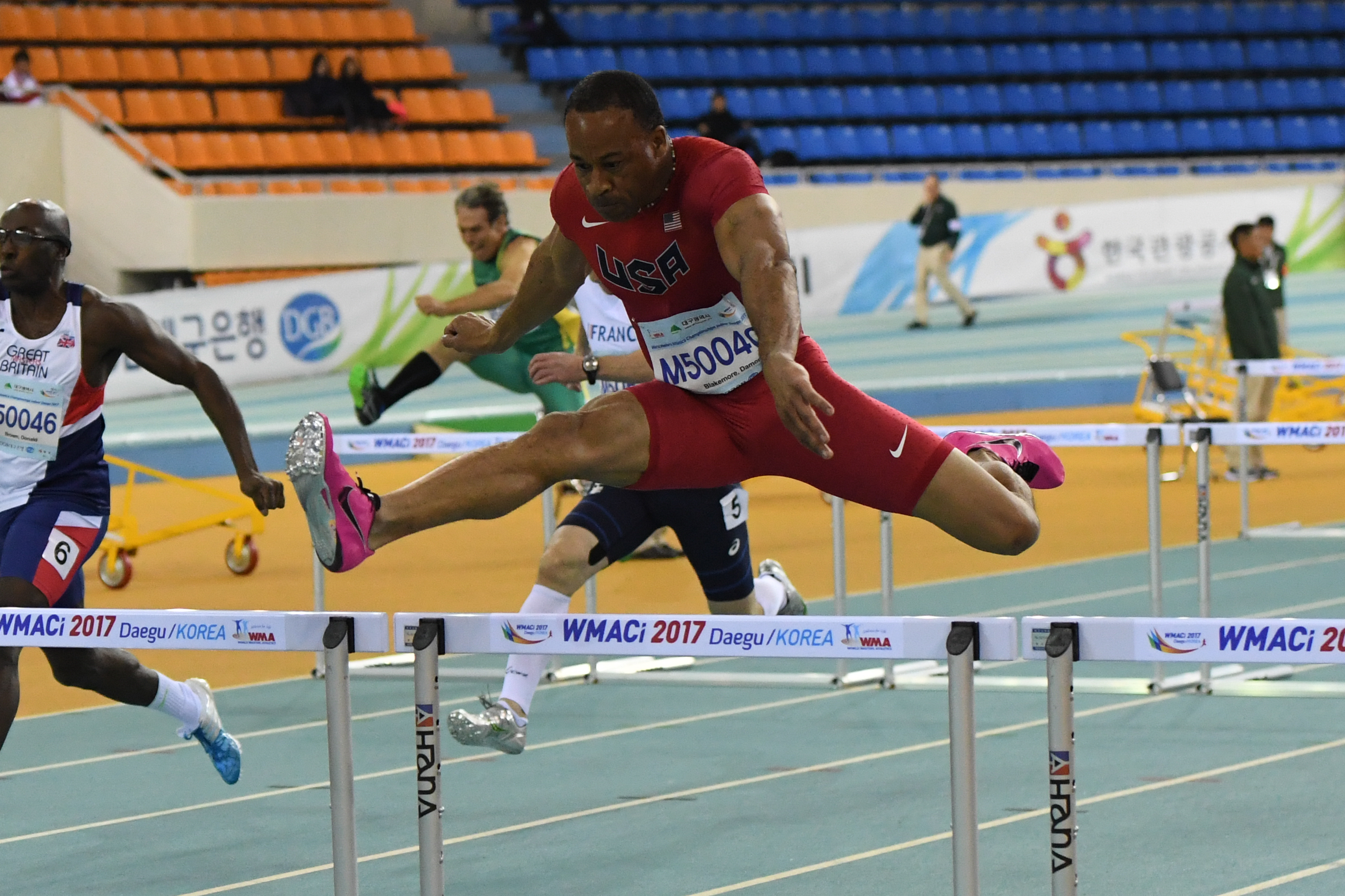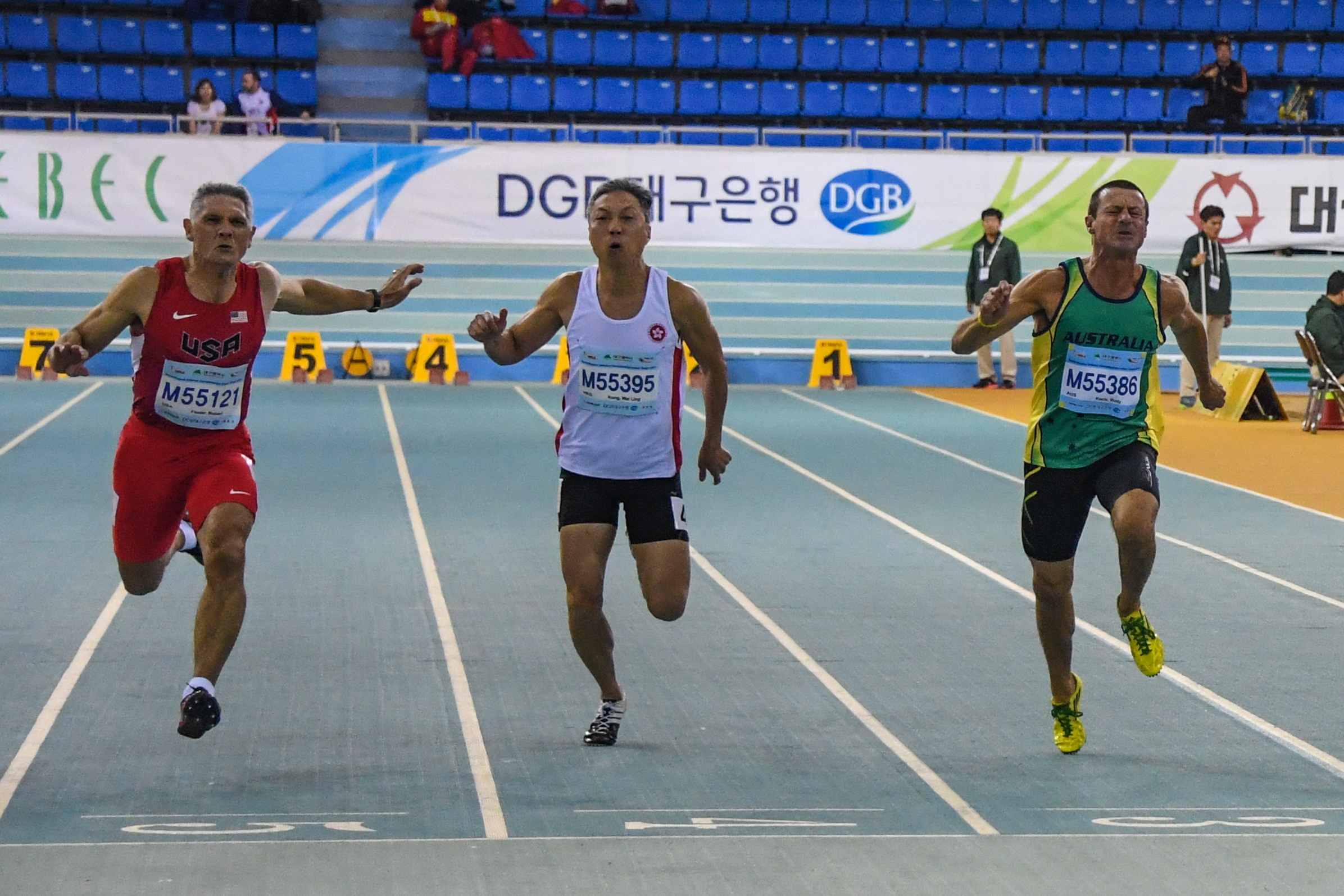 Damon Blakemore silver medal at M50 60 meters at Daegu, South Korea