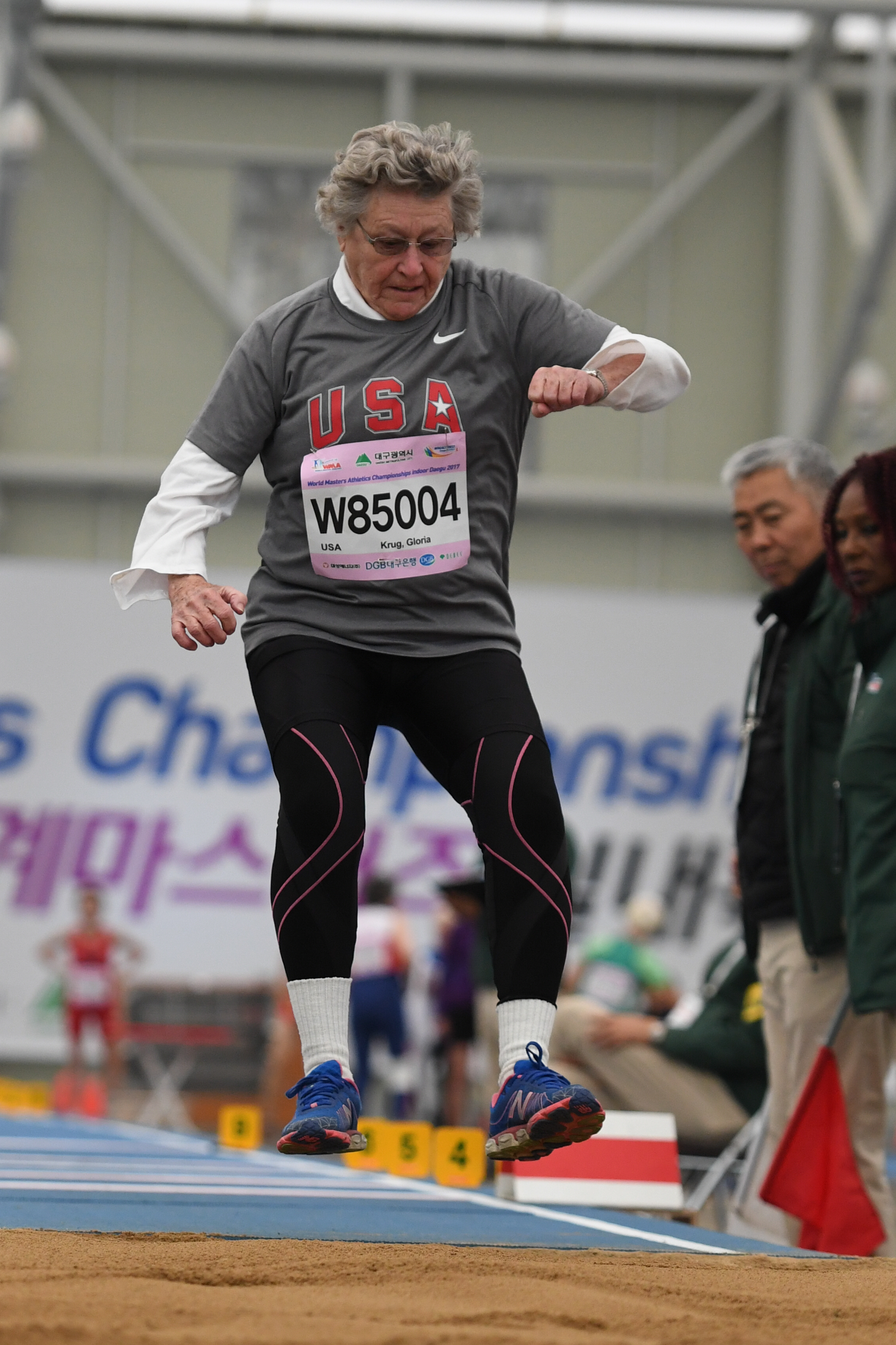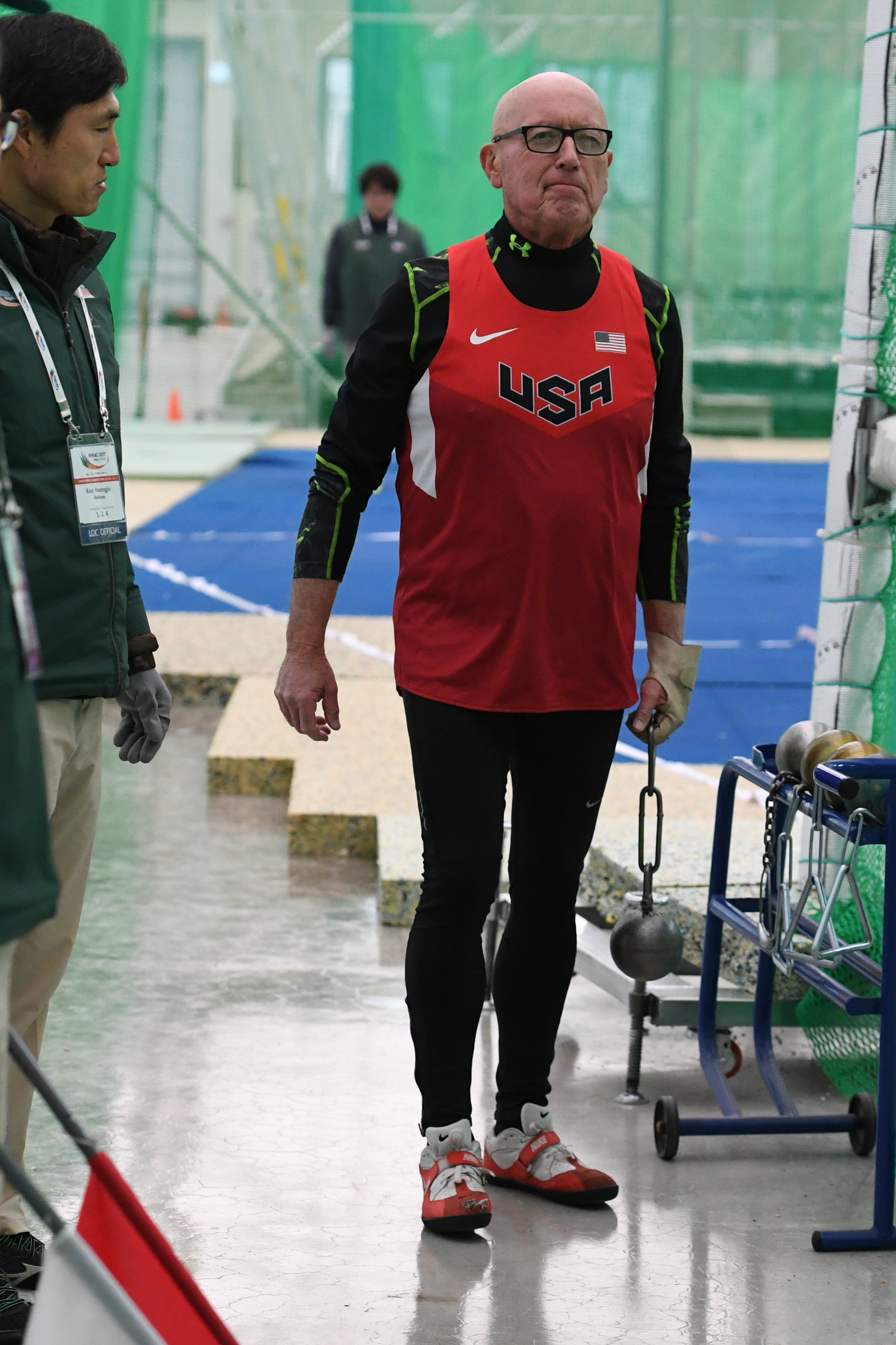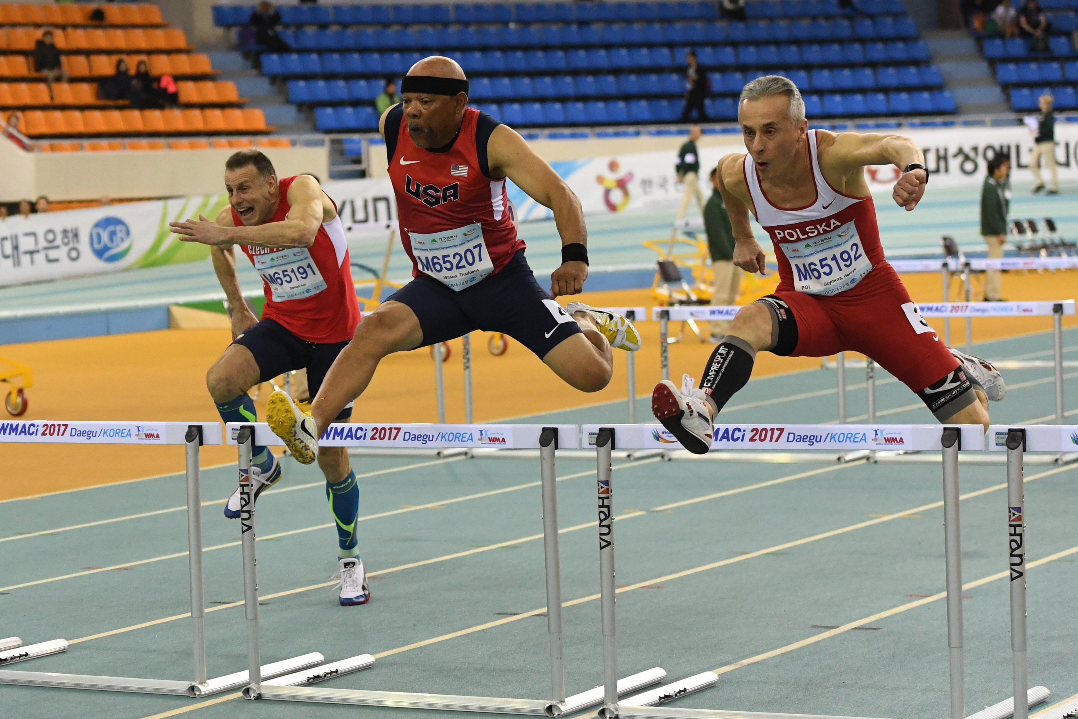 Bruce McBarnette gold medal at M55 high jump at Daegu, South Korea, his 13th world championship,