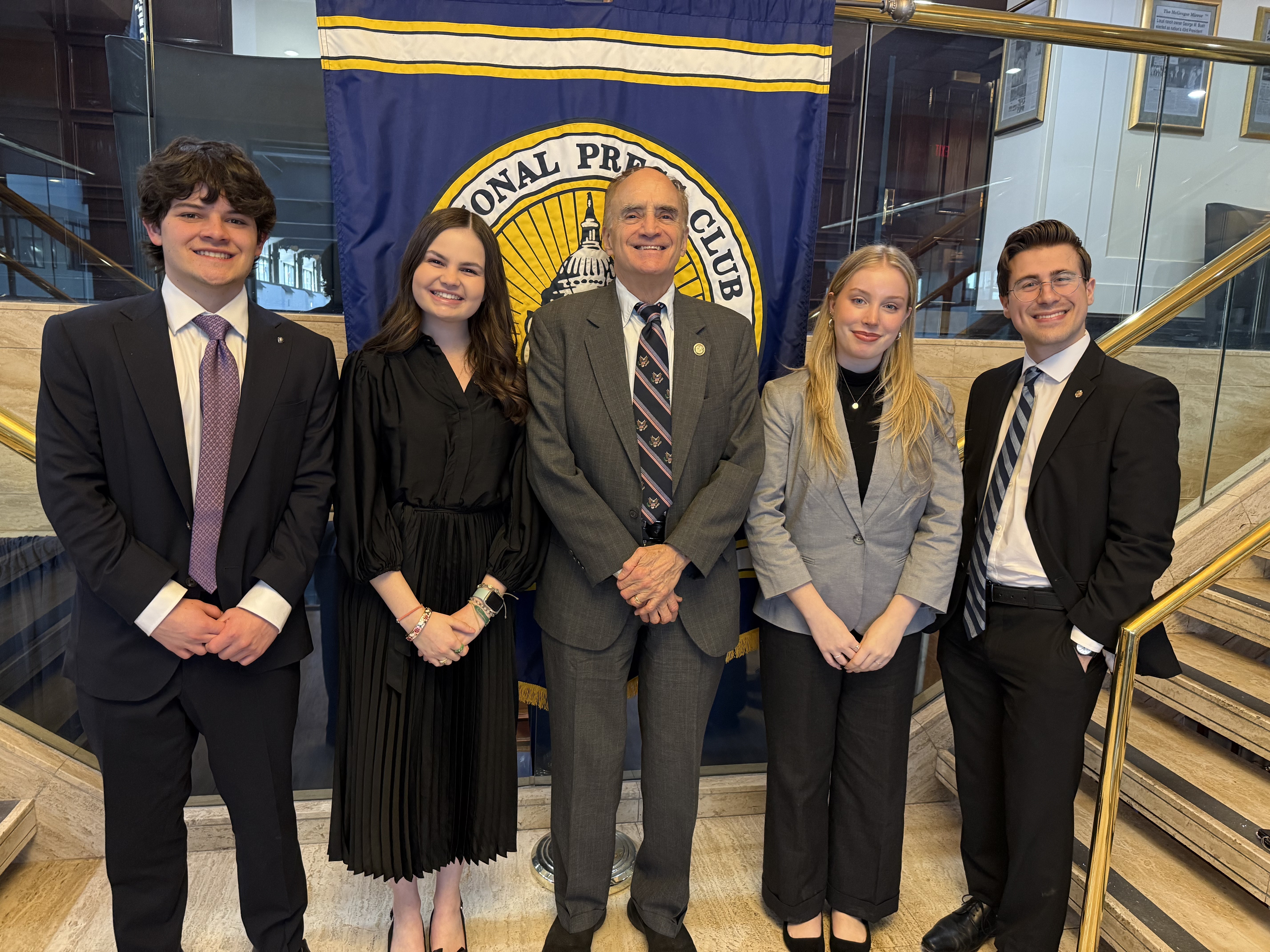 • April 22, 2016 -- Photo of Bob Weiner, President, Weiner Public News, center, with National Press Club op-ed co-authors (L to R): Daniel Khan, Lile Fu, Bob, Elizabeth Burke, senior analyst Ben Lasky
