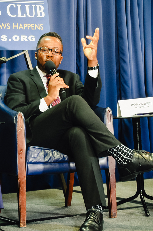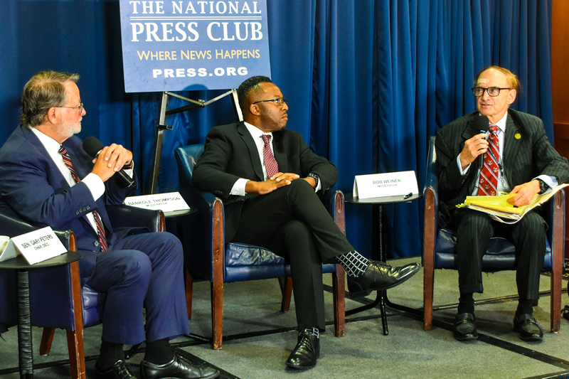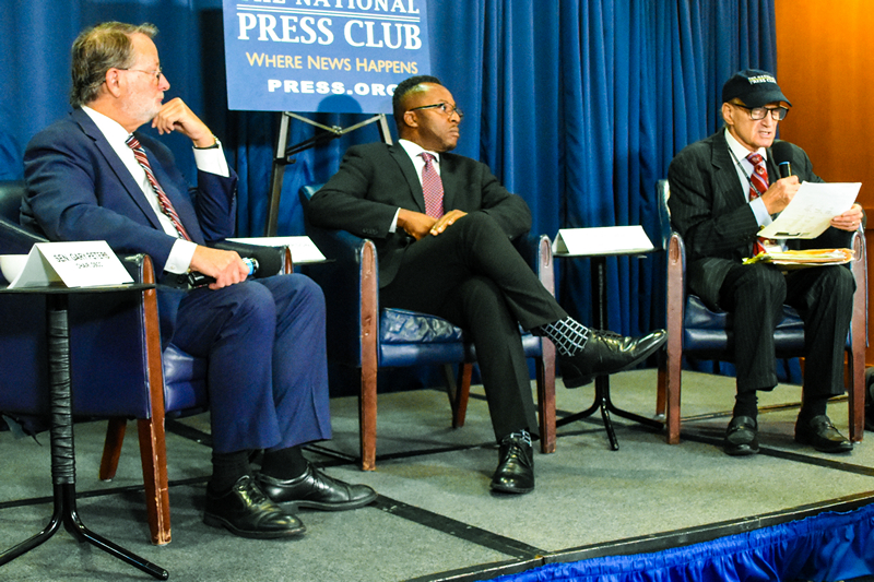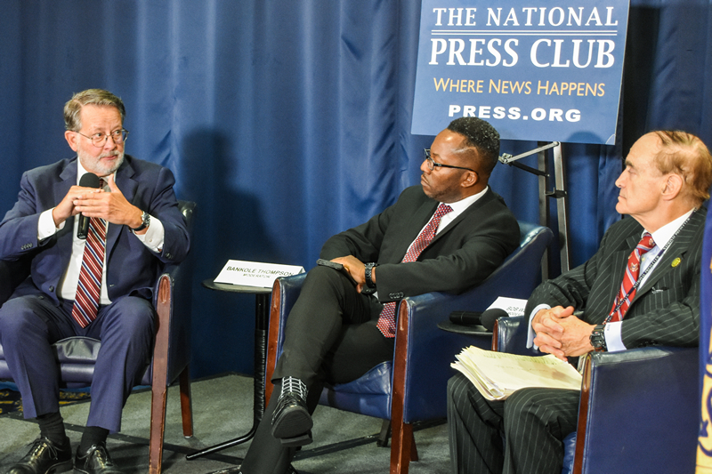 current National Press Club president, asks a question of Sen. Gary